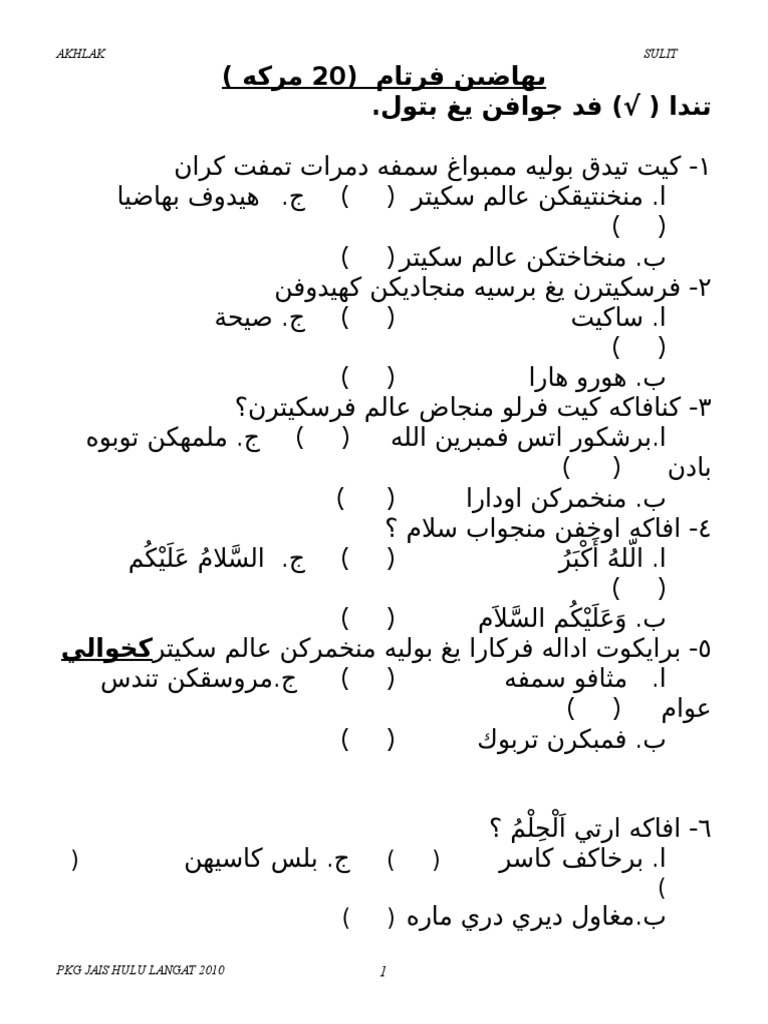 Soalan Akhlak Tahun 2 Jais Viral Blog B